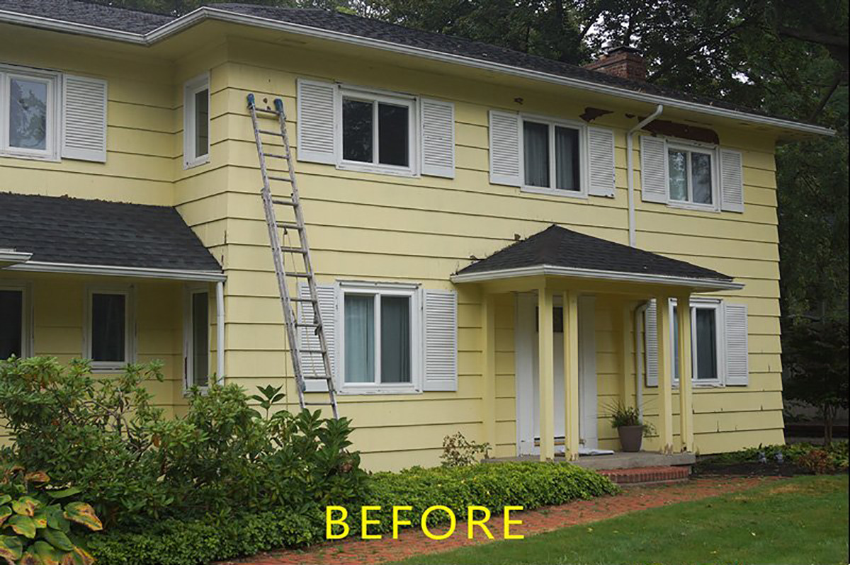 Yellow is one of those paint colors that you either love or hate and Barbara fell into the latter. After purchasing her new home, the yellow paint was the first thing to go but it needed some serious prep to get the surface ready. After a full power washing, all of the loose paint was removed and the bare wood was primed before giving Barbara’s home the makeover she desired.