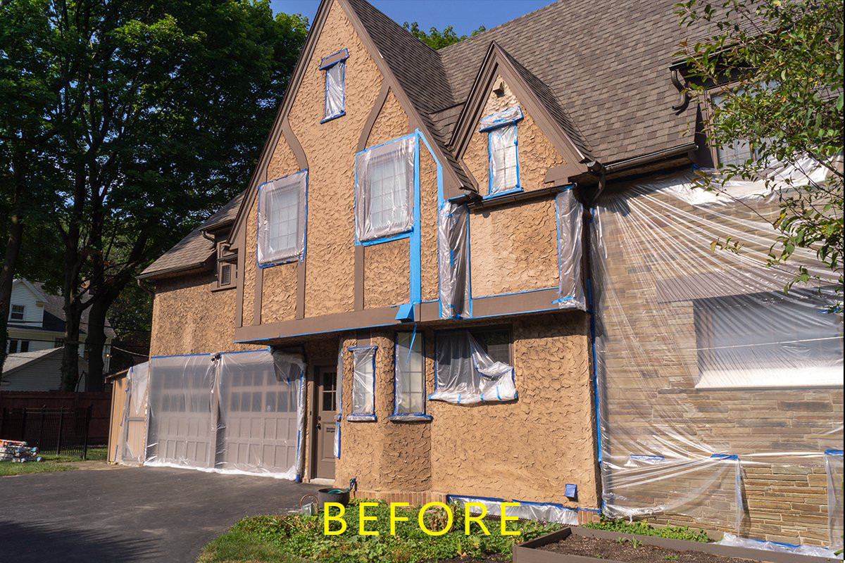 We rarely see stucco homes while painting in Rochester but we are always excited to work on something a little different. Traditional brush and roller techniques do not work well on stucco because there are a lot of nooks and crannies and the surface is often thirsty. Which is why we used a sprayer for this exterior painting project. Our team is experienced with spraying techniques as they are part of our cabinet refinishing and renovation work. As you can see, it’s all about preparation and precision. James was ecstatic with the finished product and it was great to help another customer achieve their goals.