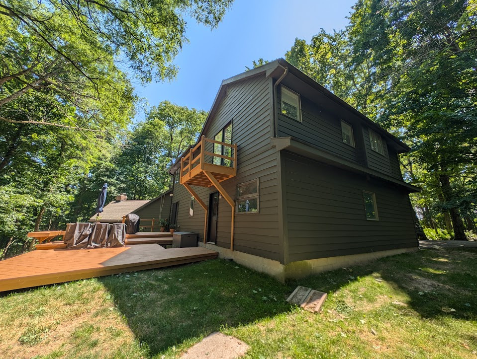 We love a dramatic transformation and Kim's exterior quickly became one of our favorites of 2024. The house was recently purchased and the first thing on Kim's list was a drastic color change. With the house being perfectly situated in the woods, it was important to make it seem like it was part of the environment and she definitely accomplished that with her bold color choices.