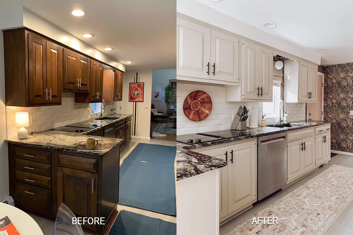 It was a pleasant surprise to hear from one of our favorite exterior customers that they were ready for a kitchen update. Dark cabinets in a galley kitchen can make the space feel small and the painted cabinets provided a dramatic makeover at a fraction of the cost to replace. Tim and Laura were ecstatic on how quickly the kitchen was transformed and now have a space that feels open and bright.