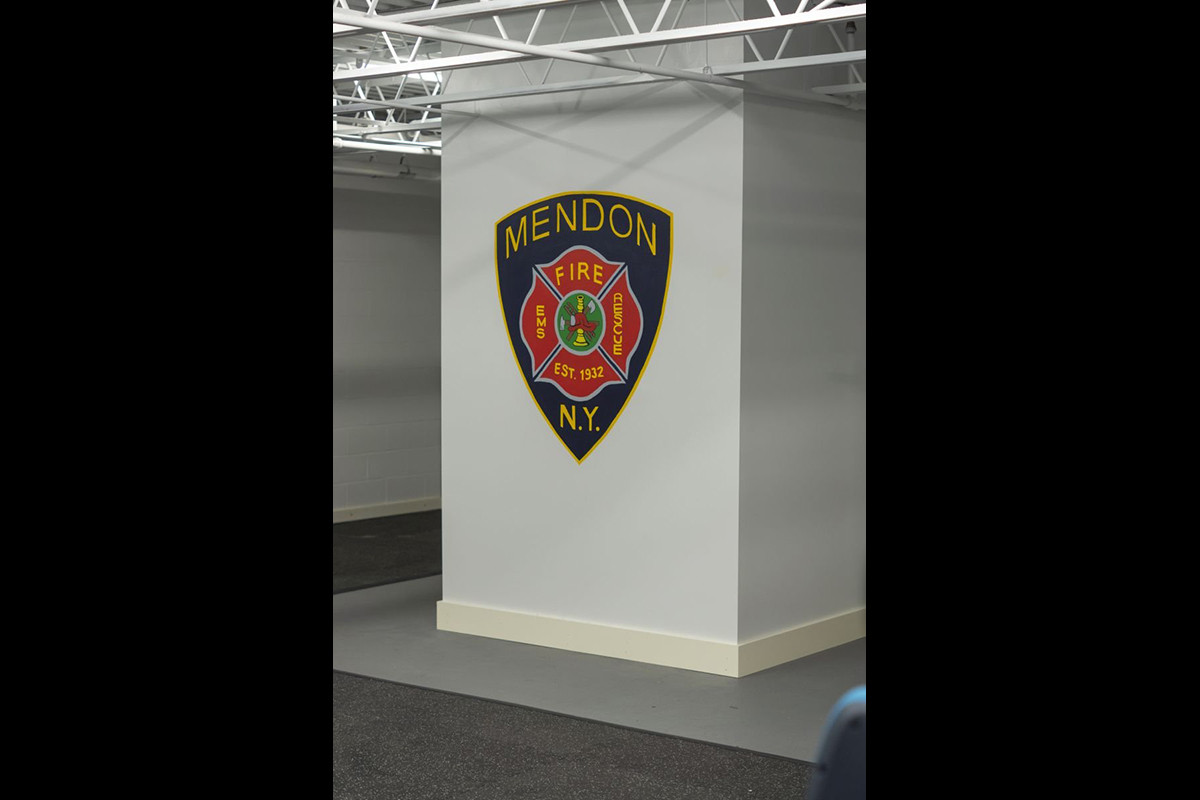 The Mendon Fire Department was looking to bring some life to their new workout room and we were happy to answer the call. We decided that there was no better way to provide some motivation and honor their hard work than a painting of the badge that is always with them.
